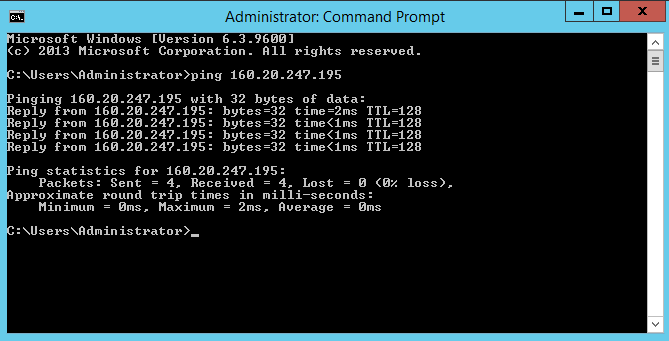 c) Una vez le aparezca la ventana del programa, escriba "ping 160.20.247.195" (sin las comillas). Pulse la tecla Enter y aguarde unos instantes. Finalmente la pantalla le indicará algo asi: